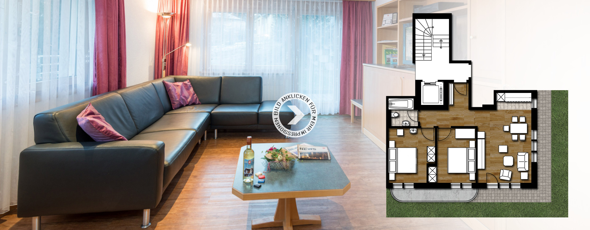 Die **** Superior-Wohnung mit einer modernen und zeitgemässen Infrastruktur ist geräumig und entspricht einem hohen Qualitätsstandard.